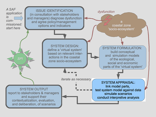 The Appraisal Step is the fourth section of the SAF. Here you will construct the Simulation model, conduct the Interpretive Analyses, and prepare the results for the Output Step. The Analyses for each of the ESE Components will differ somewhat and will be separately discussed, as appropriate, in the following activity descriptions.